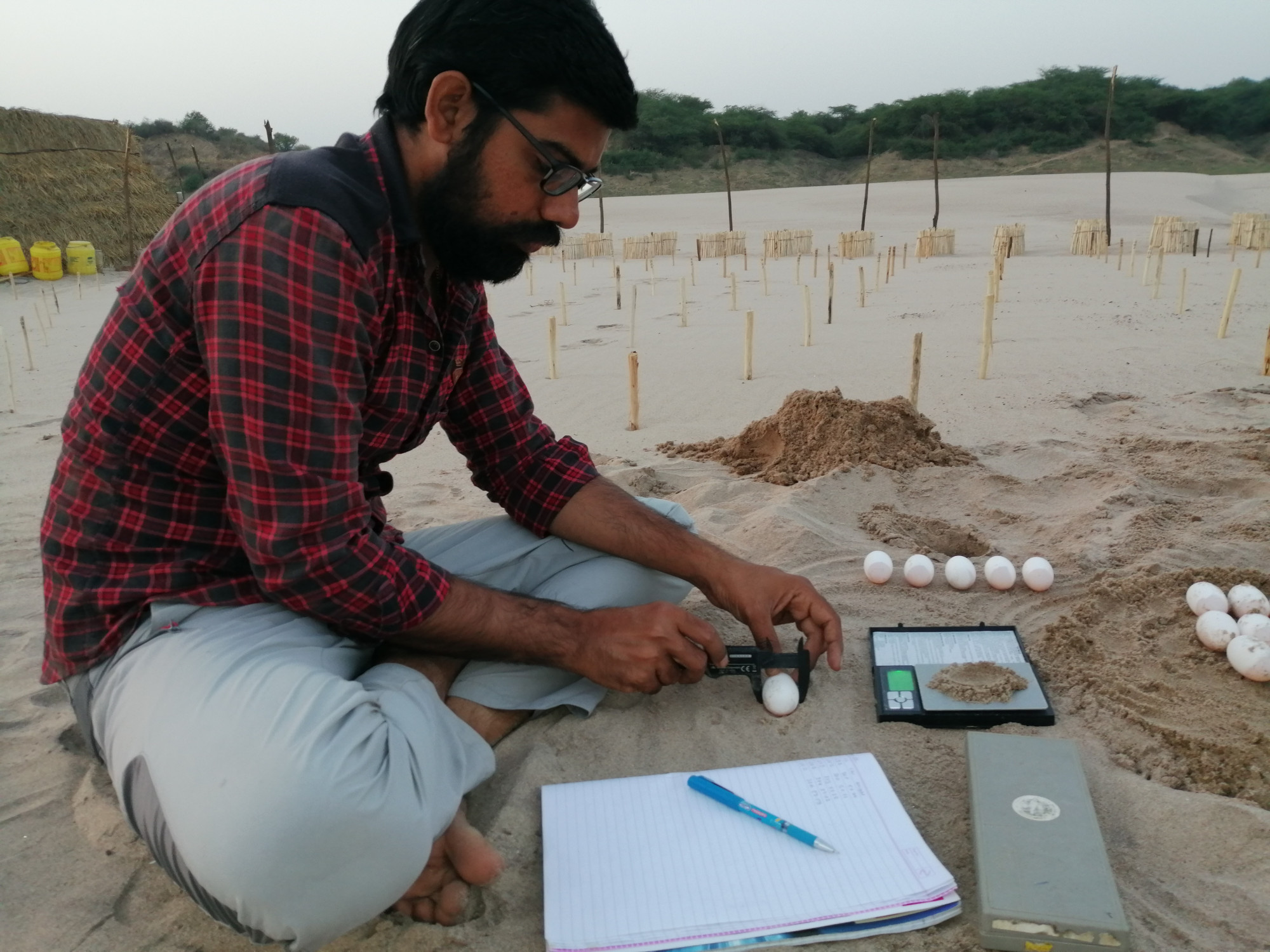 - Pawan Pareek who is studying nesting habitat of the red-crowned roofed turtle in the Chambal Sanctuary, India.